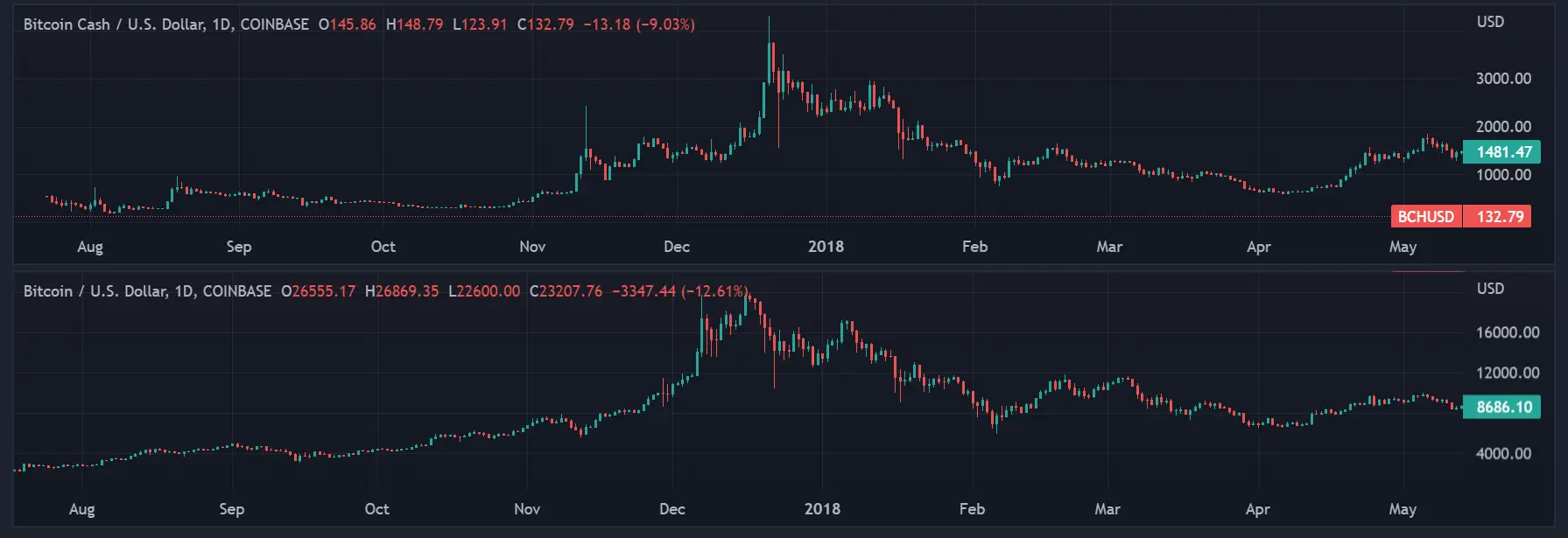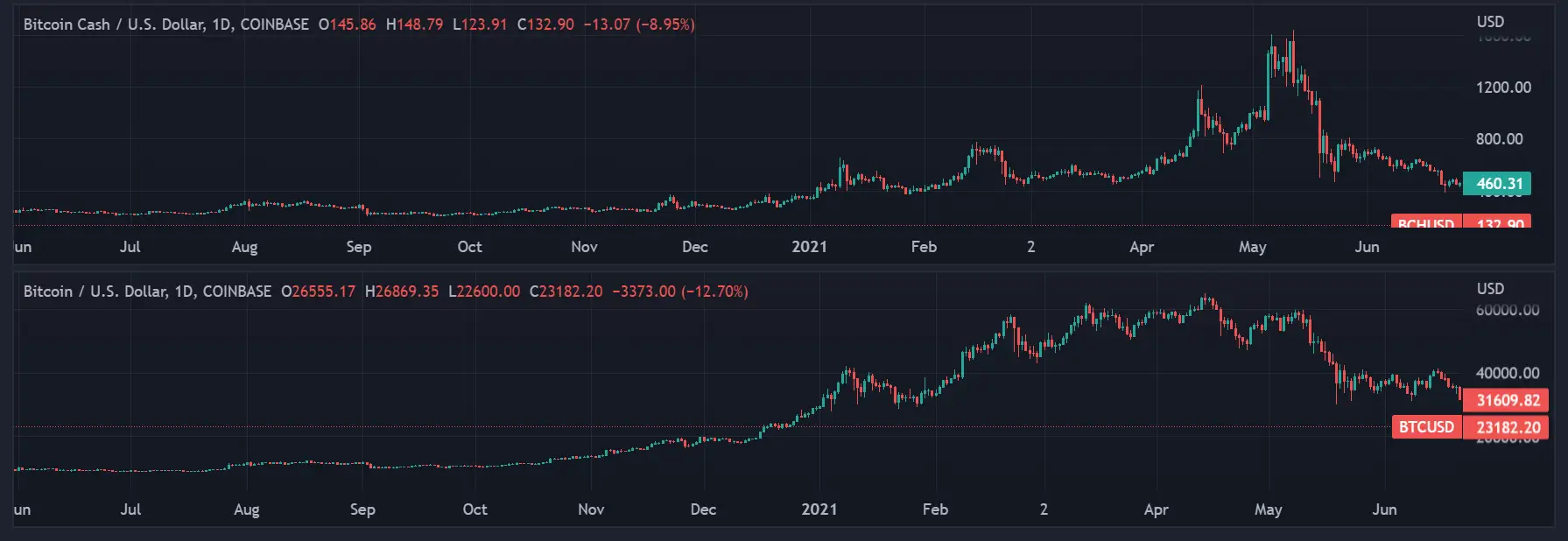 A direct correlation can be seen between BCH digital asset and Bitcoin prices. This fact became evident when the Bitcoin price soared to record highs in 2017. The massive influx of retail investors entering digital asset pushed the BTC price above $20,000 in December 2017. Since most digital assets were paired against Bitcoin on exchanges, their prices also went ballistic. In December 2017, the Bitcoin Cash price hit its all-time high of $4,300. It was a whopping increase of 21 times from its August 2021 low of $204.